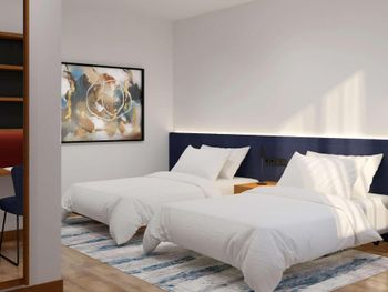 До этого много раз жил в отелях у этого аэропорта, решили семёй 2+2 попробовать новинку (он только открылся) Очень дорого обходится бренд, номер на удивление маленький и тесный, на цокольном этаже (половина окна смотрит в стену сверху дорога. Номер выше не дали, сказали что пока работает только один этаж. На завтрак есть тесто и вафельницы, отличная идея... но вафельницы оказались выключенными, а тесто я естественно уже налил ))) общем сходу вывел из строя 1 прибор из 2х.