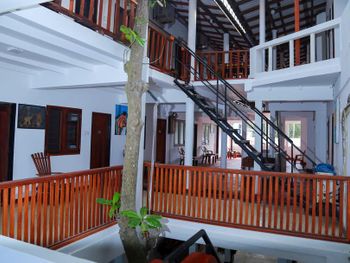 Абсолютно новые номера в самом центре города Хиккадува. В номерах и отеле идеальная чистота. Наш номер был настолько новый, что на фурнитуре не были отклеены защитные пленки. Персонал может поменять вам деньги по выгодному курсу. При отеле кафе с супер вкусной и дешёвой едой. В один день у нас сломался водонагреватель в номере. Ребята моментально реагируют на запрос. За пол часа поменяли ему розетки и все заработало! Очень уютно красиво и комфортно