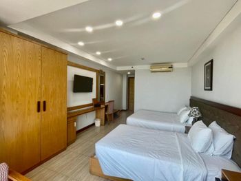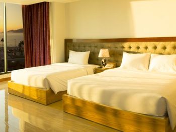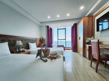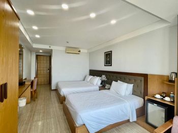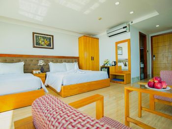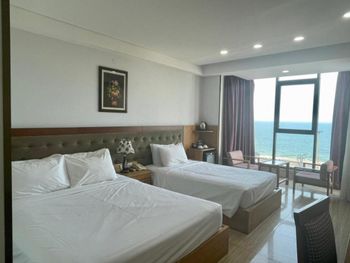 Бронировали представительский люкс с видом на море за месяц!!!По приезду дали нам боковой номер,категория которого должна звучать как «с частичным»видом на море. На ресепшн номер менять отказались,соврав о том,что свободных с видом на море нет(зачем бронировал за месяц,спрашивается?) да и вообще,если вам посчастливиться встретить кого-то на ресепшн,помощи не ждите,абсолютная не заинтересованность персонала,даже нож не стали искать по нашей просьбе,что абсурд для отеля. В лифте жутко воняет помоями,бассейн покрыт грязевой пленкой,страшно было даже окунуться туда, про завтраки-отдельная тема. Из 6 дней мы приходили туда 3 раза и ровно столько же раз разворачивались и уходили,есть было нечего,от слова совсем. Для вьетнама это просто позорище. Кроме расположения,уборки номеров и того факта,что нас заселили в 12 дня плюсов больше нет,хотелось поскорее съехать отсюда. За эти 3 плюса-оценка 3 звезды.