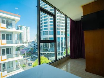 Расположен прямо напротив театра, три минуты до пляжа. Номер 712 с прямым видом на море и на площадь с Лотосом. Очень внимательный персонал на ресепшн, готовый помочь по любому вопросу.