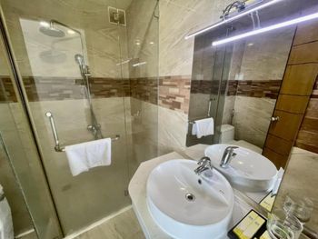 Довольно просторный номер. Небольшой но все-таки холодильник. Ежедневная уборка. Хороший кондиционер.