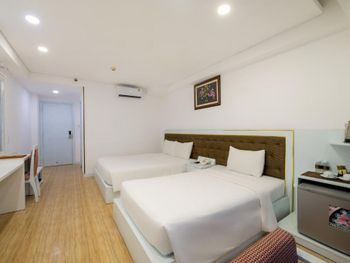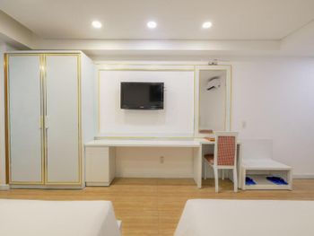 Довольно просторный номер. Небольшой но все-таки холодильник. Ежедневная уборка. Хороший кондиционер.