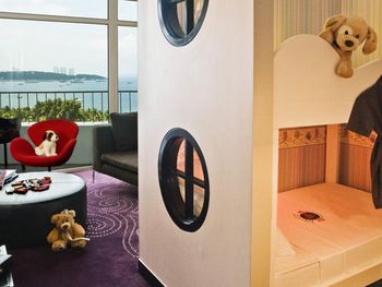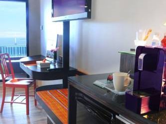 Проживали в номере Делюкс с видом на море. Номер современный, но в номере нет балкона и окна закрыты на ключ для безопасности. Открывать их реально опасно. В результате, невозможно выключить кондиционер в номере из-за духоты и жары, проблемно высушить мокрые вещи и купальники.