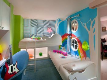 В отеле много интересных фирменных фишек , хороший бассейн с солёной водой и песком на дне. Номер простенький но со стилем. Есть какая то анимация для детей. Детская комната и зона для подростков. Есть горки, но они до 6 вечера и взрослым нельзя:(