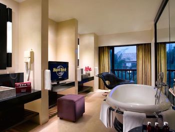 В Hard Rock Hotel Bali во всех номерах есть кондиционер, телевизор с плоским экраном с кабельными каналами и сейф. Среди прочих удобств — гостиная зона и собственная ванная комната с душем, бесплатными туалетно-косметическими принадлежностями и феном. В собственной ванной комнате есть тапочки. В распоряжении всех гостей письменный стол и чайник.