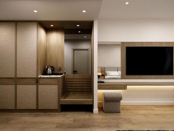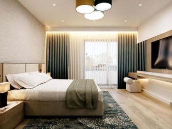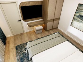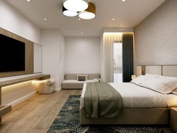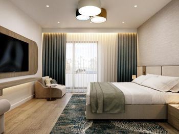 В целом если не тянет на свои деньги. Если уж ничего хорошего не нашли, то можно тут остановиться. Территории у отеля почти нет, если не считать 2 квадрата у бассейна. Номера очень маленькие. Мы бронировали люкс с балконом, был заявлен как 42кв. Приехали , заселяемся, заходим в номер даже коридора нет, сразу начинается комната , вся обувь располагается посередине комнаты, если разложить диван маленький, то уже не пройти к балкону. Балкон очень маленький. Спальня очень маленькая , проход у кровати только боком. Шкаф сделан один на весь номер, в нем только нижняя полка и очень высоко весит штанга, вещи доставал только муж, с ростом 168 достать можно только привстав на полку. Самое основное, Кондиционер! Есть только в гостевой комнате, в спальне нет, духота в 34 градуса, спать нереально. Делали кондиционер на 19 градусов на целый день и уходили из номера чтобы комната остыла и хватило на пол ночи. Завтраки однообразные. Кофе как из пакета (не кофемашина). Ванная комната из душа вытекает вода в ванну, выходишь в лужу. Нет ни одной полки чтобы поставить средства по уходу, есть только столешница на которой стоит очень большая раковина, из за которой ничего больше не поставить 😕 При проживании 4 человек средства ставят только на одного, 3 остальным мыться не надо?... постоянно приходилось говорить уборщицам поставить средства чтобы помыться.