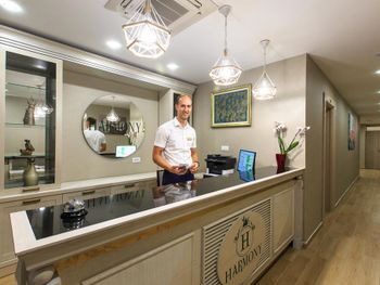 Бронировал номер для семьи, выбирал из трех отелей . Цены были сопоставимы. В итоге выбрал Harmony, поскольку на Букинге была указана самая большая площадь номера -42м2 , за Люкс с балконом. Жена с детьми прилетела раньше .Созвонились , говорит номер довольно тесный . Прилетев через несколько дней убедился что номер явно не 42 м2. Обратился в отель с вопросом по этому поводу . Полагаю что кто то из сотрудников , сразу скорректировал информацию на сайте booking.com с 42м2 на 32м2. И сотрудник отеля тыча пальцем в экран своего компьютера говорит - видите 32м2)))). Очень неприятное ощущение , когда тебя считают дураком. Ни извинений, ничего....
