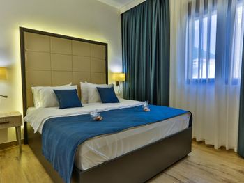Отель понравился. У нас был просторный двухкомнатный номер на 3 этаже. Светлый, с большим балконом. Отель расположен в тихом месте, поэтому спалось хорошо. Рядом есть несколько маленьких супермаркетов и большой Voli. До пляжа 3 минуты пешком. Вдоль пляжа расположена набережная с множеством ресторанов и баров. Персонал отеля очень гостеприимный и вежливый. У нас было фиксированное парковочное место. Парковочных мест рядом с отелем не много, около 6. Мы были не в пик сезона, поэтому нам место досталось. Завтраки в отеле вкусные. Были фрукты и много выпечки + можно попросить приготовить блины или фруктовые десерты. Понравилось то, что у ресторана, где проходили завтраки есть как закрытое помещение, так и летняя веранда.