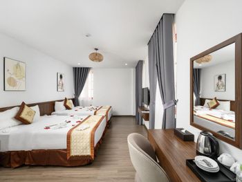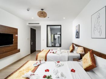 Очень хороший отель, в номере чисто, все удобства, есть банные принадлежности. Номер брали с балконом, сам балкон маленький, но выходит на красивую улицу. Вай фай хороший. Персонал очень приветливый и во всем помогал. Есть бесплатный шаттл от отеля на ближайшие пляжи и достопримечательности. Это очень обрадовало. Пляж Khem советую. Сансет таун в двух минутах пешком. Магазинов продуктовых правда в этом районе особо нет. Кафе отлично заменил ночной рынок в Сансет таун. Внизу отеля можно заказать напитки и завтрак. Рядом есть кафе с завтраками до 13:00 bo ne.