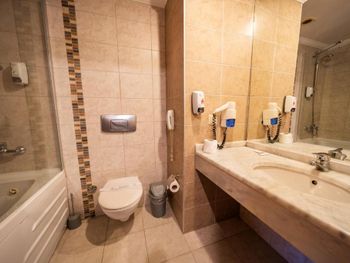 Большой плюс отеля это ванна. В Турции не часто бывает ванна в номерах. В целом есть все необходимое. Вид из окон, которые не на бассейн нам очень понравился.