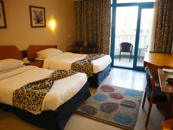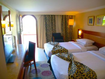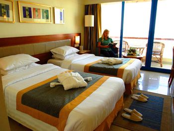 Номера с французскими окнами обставлены современной мебелью. В распоряжении гостей кондиционер, мини-бар и телевизор с плоским экраном и спутниковыми каналами. Из всех номеров открывается вид на Красное море.