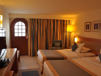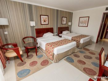 Номера не очень, многое поломано, но тут же приходят ремонтировать. Еды мало, особенно на пляже, перекусить нечем. Воду покупали сами. Алкоголь не дают по системе \'все включено\'.