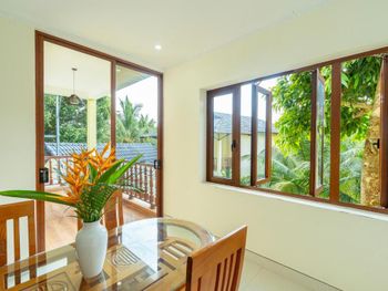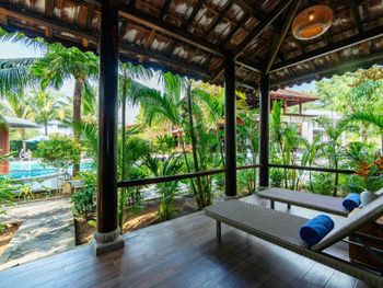 Территория-идеальные ухоженные джунгли. Никакой страшной живности не встретили, только птицы, гекконы (они же издают очень громкие звуки ночью).Чистые теплые бассейны, хороший завтрак.
