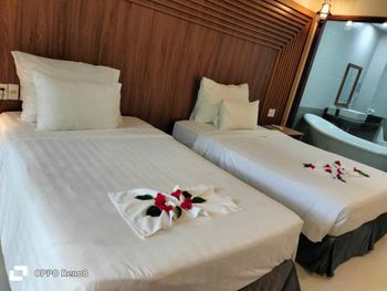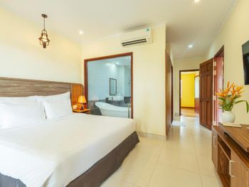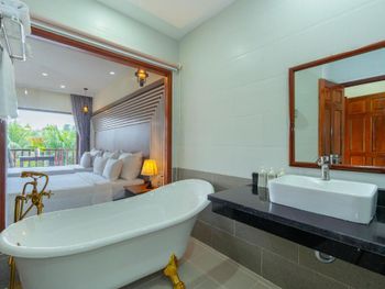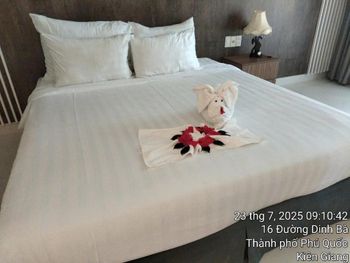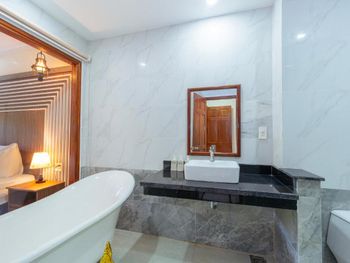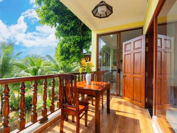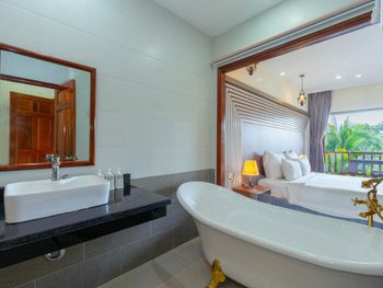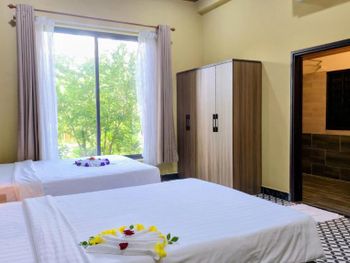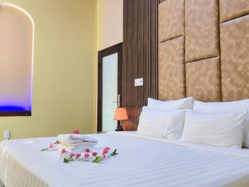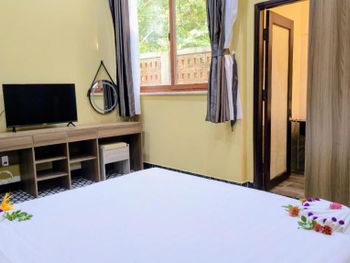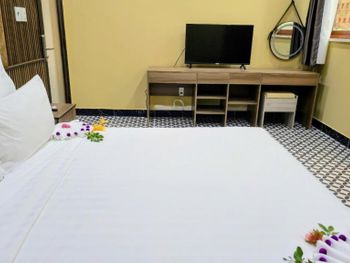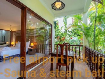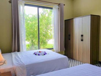 Просторный номер, красивый вид на сад. На балконе есть столик, можно посидеть. В ванной есть набор зубной пасты, расческа, бритва. Вода в бутылках обновляется каждый день, если вам не забудут убрать номер. Слышимость в номерах высокая, но мы были в низкий сезон, поэтому соседей было мало и нам не мешали. В отеле можно брать в аренду байк. Завтраки хорошие, мы брали омлет, овощи, фрукты и очень вкусный йогурт в бутылочках. Ходили на массаж в отеле, парень брал массаж все тело-ему понравилось, я брала ноги -нет, наверно мне не повезло с мастером. Цены на массаж в отеле в 2 раза дороже, чем в районе grand world, там ходили в разные салоны массажа и очень понравилось. Удачное расположение отеля. Рядом есть кафе, где можно перекусить и поужинать, есть прачечная и киоск со смузи и свежевыжатыми соками, магазин с продуктами, но в к+mark дешевле. В отеле очень тихо и спокойно. Рядом есть остановка общественного транспорта, на автобусе можно доехать до центра и погулять в Grand World(ехать на автобусе 25 минут) , покататься на гандолах(когда вы покупаете в кассе билет вам дают мороженное), сходить на шоу Квинтисенция(об истории Вьетнамского народа). Можно уехать в аэропорт. Автобусы городские -бесплатные (можно скачать приложение VinBus и отслеживать расписание движения автобусов) и в автобусе есть кондиционер. Одна остановка от отеля(можно 2 минуты дойти пешком) есть огромный супермаркет K+mark, там все дешево и есть абсолютно все. На море возят и забирают на электрокаре(надо водителю сказать время обратно), дорога через дома местных жителей. Дорога от места, куда привезет водитель, до моря -по ступенькам, может быть трудно с детской коляской. На пляже стоят 5 пар лежаков и есть несколько столиков и стулья под навесом. Очень хороший вход в море. Огорожена зона для купания и совсем не глубокая, плывешь и плывешь, а потом можно просто встать на ноги и идти. На пляже есть кафе, можно купить фрукты, воду, закуски, напитки.