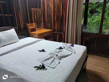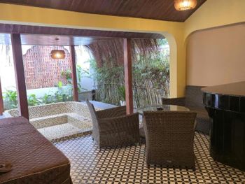 Всё в этом отеле идеально. Очень хороший персонал, такие все приветливые и улыбчивые, вкусные завтраки, два бассейна. Каждый день уборка, смена полотенец , через два дня смена белья. Хорошее просторное бунгало с кухней и на веранде зоной отдыха. Периодически травят насекомых.