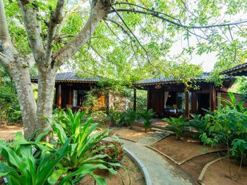 Красивая территория отеля, все в зелени, два хороших бассейна. Хороший завтрак, вкусные йогурты, всегда есть фрукты.Сотрудники отеля очень приветливые, стараются решить все вопросы и проблемы, угощали нас кокосами)