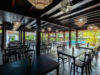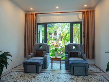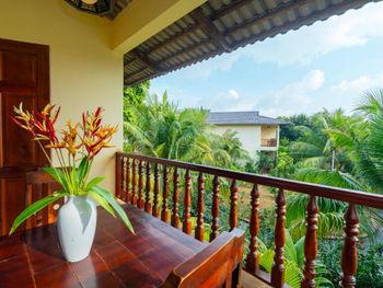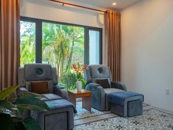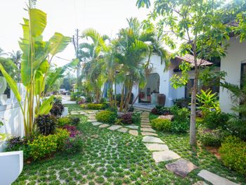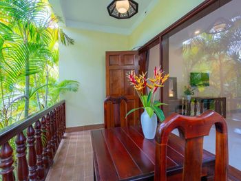 Бунгало с кухней, большой террасой. Есть удобная мебель для работы. 2 бассейна, кое какая качалка. Отлично следят за территорией, все убирают. Достаточно большая, красивая и зеленая территория для такого небольшого количества жилья и людей. Есть прикольный SPA, массаж, ресторан на территории. Дружелюбный персонал. Подвозят на/с пляжа на багги.
