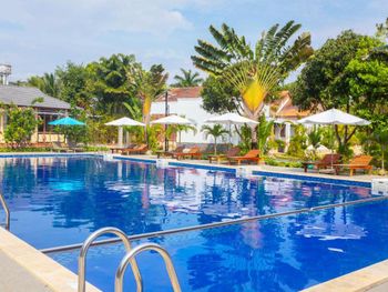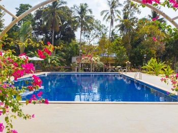 Красивая территория отеля, все в зелени, два хороших бассейна. Хороший завтрак, вкусные йогурты, всегда есть фрукты.Сотрудники отеля очень приветливые, стараются решить все вопросы и проблемы, угощали нас кокосами)