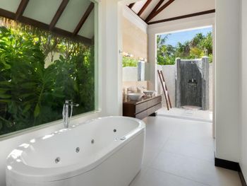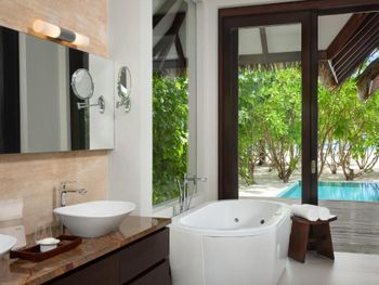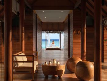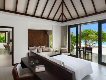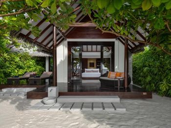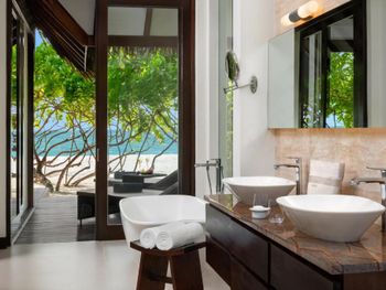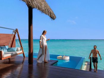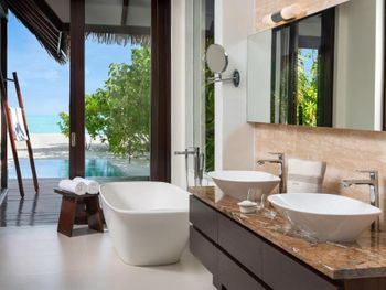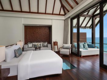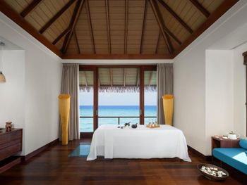 Восхитительно идеальный отель на Мальдивах! Начну с того, что в отеле по прилету за вами сразу закрепляется батлер , который в дальнейшем помогает решать возникающие проблемы, возит по территории на машинке, записывает в рестораны, спа и отвечает на все вопросы:) это удобно) Мы жили в вилле на воде. Это идеал!!! Проснуться утром с видом на бесконечный простор океана под окнами, выпить чашечку свежесваренного кофе - бесценно! Абсолютная тишина и чувство уединения. Большой и достаточно просторный номер. Все очень чисто, уборка дважды в день, ежедневное обновление мини-бара, кофемашина в номере. На балконе два лежака (полотенца меняют дважды в день и по запросу), сушилка для белья, мягкий диван, стол. Спуск в воду по лестнице , тут как раз небольшой минус, дно усыпано «разрушенными» кораллами , ходить неприятно, достаточно Мелко, по ощущениям глубже 1,5 метров не было. Можно плавать в маске (взять в аренду) , есть спасательные жилеты Рядом с домиками много мелких (порой крупных) рыб, встречаются небольшие акулы, скаты, рыбы-иглы, периодически бывает страшновато), дальше не плавали). Велосипеды в стоимость не включены, но и смысла особого в них мы не увидели, остров не большой, ходили везде пешком. Ресторан основной - идеален! Большой выбор еды, разнообразное мясо, рыба, морепродукты, различные гарниры, салаты, закуски, овощи, соусы, десерты фрукты. Подают любые напитки, все ж, что захочется. Плюс 4 ресторана на территории , в которых можно забронировать ужин. Хорошие, самый прекрасный Ambula (со звездой Мишлена). Не понравился Bangkok (жутко перчено пряно острая еда), в в целом не фанаты Тайской, здесь не понравилось абсолютно, теппаняки шоу тоже посредственное, 50 долларов уж точно не стоит. Бассейн на территории (не ocean suite) очен хороший, не маленький, много лежаков и мест, где можно посидеть, позагорать.