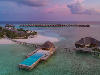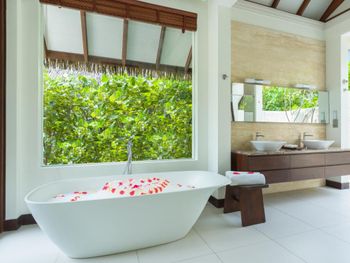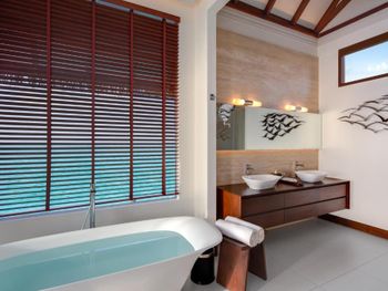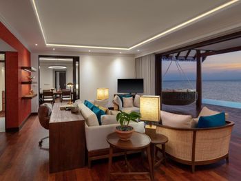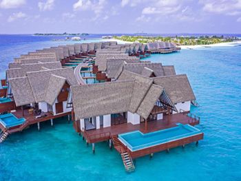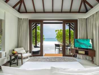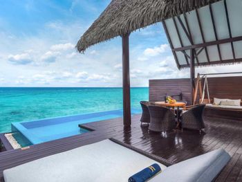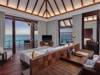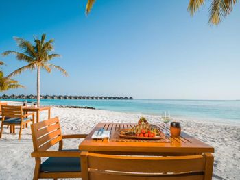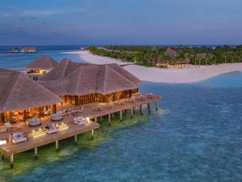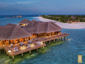 Восхитительно идеальный отель на Мальдивах! Начну с того, что в отеле по прилету за вами сразу закрепляется батлер , который в дальнейшем помогает решать возникающие проблемы, возит по территории на машинке, записывает в рестораны, спа и отвечает на все вопросы:) это удобно) Мы жили в вилле на воде. Это идеал!!! Проснуться утром с видом на бесконечный простор океана под окнами, выпить чашечку свежесваренного кофе - бесценно! Абсолютная тишина и чувство уединения. Большой и достаточно просторный номер. Все очень чисто, уборка дважды в день, ежедневное обновление мини-бара, кофемашина в номере. На балконе два лежака (полотенца меняют дважды в день и по запросу), сушилка для белья, мягкий диван, стол. Спуск в воду по лестнице , тут как раз небольшой минус, дно усыпано «разрушенными» кораллами , ходить неприятно, достаточно Мелко, по ощущениям глубже 1,5 метров не было. Можно плавать в маске (взять в аренду) , есть спасательные жилеты Рядом с домиками много мелких (порой крупных) рыб, встречаются небольшие акулы, скаты, рыбы-иглы, периодически бывает страшновато), дальше не плавали). Велосипеды в стоимость не включены, но и смысла особого в них мы не увидели, остров не большой, ходили везде пешком. Ресторан основной - идеален! Большой выбор еды, разнообразное мясо, рыба, морепродукты, различные гарниры, салаты, закуски, овощи, соусы, десерты фрукты. Подают любые напитки, все ж, что захочется. Плюс 4 ресторана на территории , в которых можно забронировать ужин. Хорошие, самый прекрасный Ambula (со звездой Мишлена). Не понравился Bangkok (жутко перчено пряно острая еда), в в целом не фанаты Тайской, здесь не понравилось абсолютно, теппаняки шоу тоже посредственное, 50 долларов уж точно не стоит. Бассейн на территории (не ocean suite) очен хороший, не маленький, много лежаков и мест, где можно посидеть, позагорать.