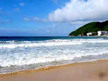 1) Месторасположение очень удобное, пляж прямо рядом с отелем; на пляже лежаки платные, мы брали с собой полотенца и ложились на них; пляж хороший, по сравнению с другими пляжами в Санье довольно чистый. Море тоже очень чистое, особенно если идти с утра и немного отплыть подальше, вода будет прозрачная