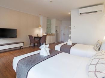 Отличное расположение, 7 минут до пляжа, по пути два магазина 7 Eleven Есть хороший бассейн, где можно полежать и поплавать, когда море неспокойное или грязное Уборка каждый день, пополнение воды, кровать огромная двуспальная Жили на 7 этаже с видом на море и о. Ко Лан