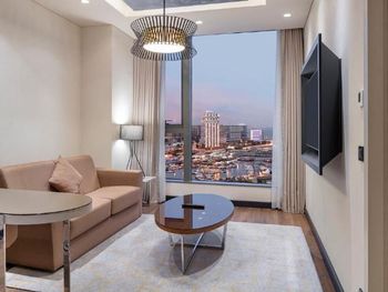 Очень медленно происходит Check-in. Не понятно для чего берут депозит в размере 100$ (при выезде возвращают), так как мини-бар абсолютно пустой. Бесплатный Wi-Fi только 5 MG/день. В бассейне плавать разрешено исключительно в шапочке. Бар с панорамным видом на верхнем этаже закрыт. Паркинг платный.