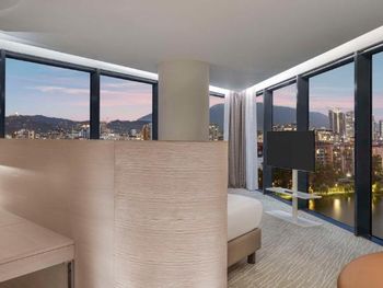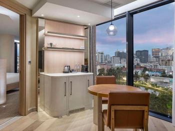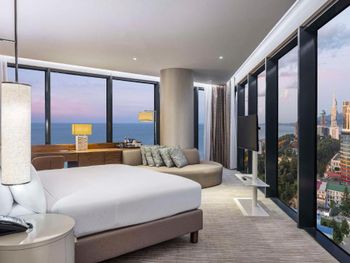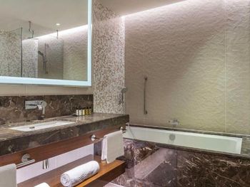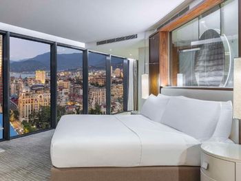 Завтрак просто тошнотворный. Еды много, но много жирного, несвежего, выглядит все неаппетитно. Десертов нет вообще, есть выпечка, но невкусная, иногда недопеченая. Есть что-то похожее на "Красный бархат", но это просто тесто и краситель. Под видом красной рыбы - крашеная селёдка. Сок ненастоящий, фрукты/овощи несвежие. Невкусно просто ВСЕ. Если прийти после 8 утра, то много людей, очереди, ощущение столовки. Два дня промучались, на третий пошли завтракать в кафе. Номер слегка устал, ковры в пятнах, мебель в ванне грязная. Уборка вечером, нам не мешало, но не всем это удобно будет. Во время уборки передвигали ноутбук, личные вещи, не очень приятно. В баре на 20 этаже обслуживание медленное, а еда - это просто обман. Заказали брускетты, принесли нечто маленькое, не с теми ингредиентами, невкусное. В отеле 4 лифта, но один все три дня был на ремонте, второй периодически не работал, иногда образовываются большие очереди.