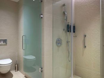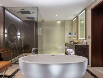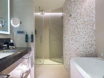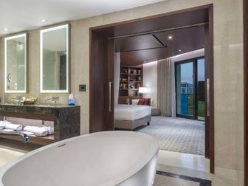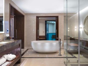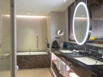Уровень Hilton. Чисто, заботливо, тепло. Все продумано. Большой номер. Очень хорошие матрасы. И постельное белье как всегда на высоте. Грамотно сделан выход из ванны — прямо в душ. Достаточно мест хранения. Проходные выключатели.