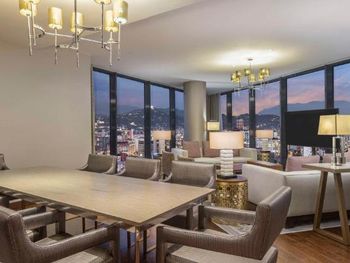 От пятизвездочного отеля под брендом Hilton ожидаешь идеального отдыха за 350 долларов в сутки и поэтому отмечу следующие минусы: 1.сломанное переговорное устройство на въезде в подземный паркинг. У меня заняло час, чтобы трижды пообщаться с сотрудниками на ресепшен, сделать на машине три круга вокруг квартала, получить замечание от офицера полиции по поводу того, что я блокирую проезд своей машиной и даже после этого я не смог без посторонней помощи заехать в паркинг. 2.в номере не было ни набора с зубной шеткой, ни бритвенных принадлежностей, ни шапочек для душа. Мне их предоставили потом, после моего напоминания :)) 3.проблемы с лифтами в виде залипающих кнопок. 4.очереди на ресепшен из-за нехватки персонала т.к. не все имеющиеся стойки регистрации были заняты сотрудниками.