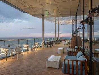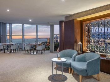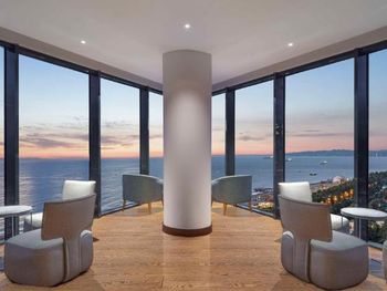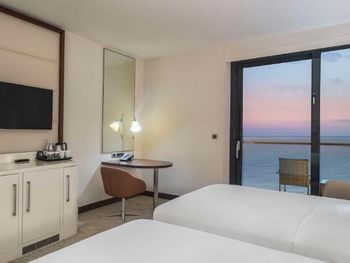 Номер просторный, есть и ванна, и душ. Есть чайник и утюг. Номер был на 15 этаже, с балкона красивый вид на море, можно встречать закат. По всему отелю хороший интернет. На 20 этаже есть бар, тоже с отличным видом на город (но это единственный плюс этого бара). В лобби вкусный кофе и десерты. Есть бассейн, сауна и хамам, там уютно и комфортно, девушкам с длинными волосами можно без шапочек (в других отзывах о них часто говорили) :) При заселении персонал помог с вещами, на ресепшне тоже все были приветливы. Расположение отеля хорошее, рядом и старая часть города, и набережная, много мест для прогулок.