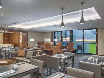 Гости некоторых номеров могут посещать представительский лаундж, где подают вкусный завтрак «шведский стол», закуски или напитки в течение всего дня и канапе в вечернее время. В отеле Hilton Batumi работает ресторан с обслуживанием по меню, в котором предлагаются блюда местной и европейской кухни.
