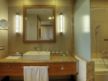 В нашем не самом дешёвом номере было сложновато жить, хотелось как можно скорее из него выбраться и совсем не из-за красоты за его пределами, а потому что он был очень странно устроен. Сам номер выглядит как наследие 90-х, он давно и явно нуждается в ремонте и перепланировке. Электроника, от телевизора и до часов-колонки, мало того, что дешёвая, так ещё устарела, ей просто невозможно пользоваться. Ванная комната и уборная разделены, и это не новинка, но я впервые видел, чтобы умывальник и ванная комната так же были разделены, причём стеклянной перегородкой. Мы путешествовали втроём, с моей девушкой и её подругой, и в итоге испытывали с такой конфигурацией миллион проблем: когда кто-то из девушек был в душе, мне было невозможно помыть руки и наоборот, когда в душе был я, девушки не могли зайти в зону с раковиной. Какой смысл делать отдельную уборную, если после неё невозможно вымыть руки - и почему в самой уборной нет раковины? Кажется, что эта проблема высосана из пальца, но на деле вы столкнётесь с ней как минимум несколько раз в день, когда проснётесь, захотите переодеться после пляжа на обед, снова переодеться на пляж после него и так далее - даже если путешествуете с семьёй. Думаю, не лишним будет отметить, что бассейны на территории ледяные, абсолютно все, купаться в них смогут только очень крепкие и активные молодые люди (мы сами такие, но не смогли). Общие душевые и уборные в отеле существуют для красоты, в них всегда что-то не работает: сливы, смесители, дверные замки. Некоторые работники слишком активно пытались приударить за красивыми девушками, в моём случае - моей девушкой и её подругой. Не знаю, как можно пытаться заигрывать с клиентом на работе, но в итоге это происходило каждый раз, когда я куда-нибудь отходил. Конечно, это внимание казалось милым вначале, но уже на второй (и последний здесь) день стало слишком навязчивым, с бесконечными мольбами о номерах телефонов или хотя бы инстаграме.