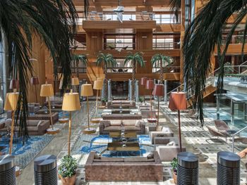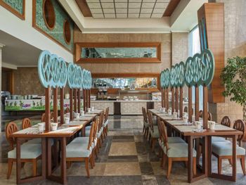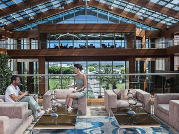 Персонал! Просто ужасно! От того, что такое количество людей, видимо ценность каждого отдельного гостя сводится к минимуму. Как конвейер и это чувствуется. В номере протекла крыша из за дождей, никто не извинился, не попытался улучшить пребывание за испорченную ночь, потому что пришлось переезжать в другой номер с двумя детьми в первом часу ночи! Даже чемоданы не помогли перенести. Я предупредил, что если мне за этот будет benefit, то я напишу честный отзыв, никто не отреагировал, потому что отзывы отдельного человека их не интересуют. Еда, красивая столовая, нет красивых блюд, атмосферы, никто не убирает грязные тарелки, кофе плохой, чтобы попросить воду или вино- нужно бегать за персоналом. Очереди везде!