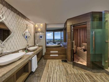 В номере всегда было накурено - жили над улицей баров, видимо оттуда через вытяжки затягивало. Вид на море - относительный, сам отель низкий - не рассчитывайте на фронтвью. Неважно какого уровня номер. Выбирая виллы у бассейнов, учтите, пилить от них до пляжа будете прилично. Спасают шаттлы конечно, но придется завязываться на их ожидание. Пляж грязный. Щепки, окурки, крышки от бутылок - убирают нетщательно. При заказе такси учтите, что приехать за вами может "лада калина" местного разлива с прожжёнными сиденьями. Лучше заказывайте трансферы, а не такси на рецепции. При выселении ни "спасибо", ни "до свидания" не сказали. Ну мы и не вернемся :)