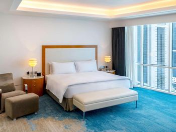 Этот 5-звездочный отель находится на набережной Корниш. В отеле предлагается размещение в номерах с кондиционером и видом на бухту Дохи. К услугам гостей частный пляж и спа-центр eForea с открытым бассейном.