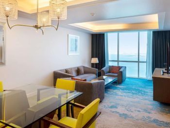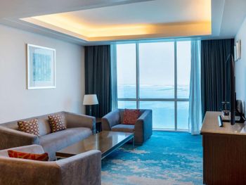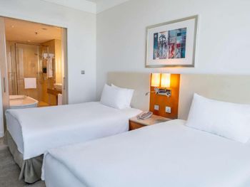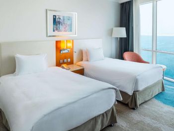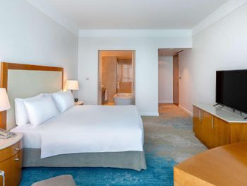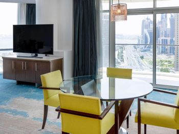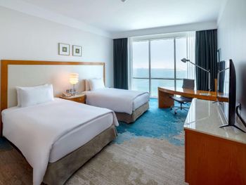 В числе удобств каждого хорошо оборудованного номера отеля Hilton — телевизор с плоским экраном, мини-бар и чайник/кофеварка. Гостям предоставляются туалетно-косметические принадлежности, фен, гладильные приспособления и халаты. Из всех номеров и люксов открывается вид на Персидский залив.