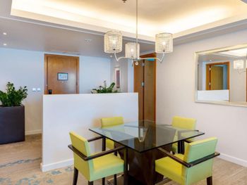 Представительский лаундж открыт ежедневно с 07:00 до 22:00. Часы скидок в представительском лаундже — с 18:00 до 20:00. В часы скидок вход детям в представительский лаундж запрещен. Доступ в лаундж можно приобрести на стойке регистрации по следующим тарифам: посещение в течение всего дня — 180 катарских реалов, посещение в часы скидок — 150 катарских реалов. Обратите внимание, что при регистрации заезда необходимо предоставить кредитную карту, которая была использована для оформления бронирования.