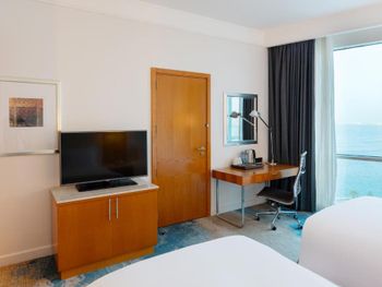 В числе удобств каждого хорошо оборудованного номера отеля Hilton — телевизор с плоским экраном, мини-бар и чайник/кофеварка. Гостям предоставляются туалетно-косметические принадлежности, фен, гладильные приспособления и халаты. Из всех номеров и люксов открывается вид на Персидский залив.