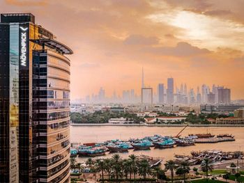 Чистота, видовой бассейн на крыше, парковщик авто, приветственный напиток, работа кондиционеров. Метро далеко, лучше на машине и это касается всех Эмиратов.