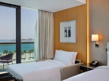 Большой, новый отель. Чистый, современный, красивый номер. Вкусная еда в ресторанах. Большое количество лифтов, не нужно долго ждать. Ухоженный пляж с достаточным количеством свободных лежаков. У нас был HB, который можно было менять между обедом и ужином. Если идете в ресторан где есть меню, то на взрослого идет из HB зачет 150 дирхам, все превышение и напитки нужно будет оплатить. Вдоль всей набережной между отелем и пляжем проходит променад, где по вечерам можно гулять. Также недалеко от отеля расположен Молл Palm Jumeirah, до которого можно дойти пешком за 20 минут. По дороге к Моллу и в нем самом много кафе и ресторанов, аптеки, магазины продуктов и даже есть алкомаркет.