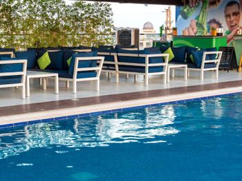 Заселение поздно.Номер не убран был,ногти нашли в постеле.Меня чуть не вырвало.Убирают плохо.Не везде протирают.Бассейне на доме напротив строители извращенцы смотрят во всю.Неприятно.Хочется уединенность.Цены высокие на еду и алкоголь.Ассортимент маленький.На завтраке иногда не всю еду кладут.Позже дают.После записывают из какого номера. Словно ты не заплатил за завтрак.Еда однообразная.Столов не хватает.Портье понравился, весёлый парень,лифтёр,дайте ему премию за старание.Ванные принадлежности комплект 1 дают, хотя нас 2.Не хватает на обоих.Зубной пасты и щетки зубной не было.Не хватало халата и тапочек,холодный пол.Бесцеремонно входят номер,может мы голые сидим.Ресторане на нг мест не было.Хотя хотелось попасть.Было очень шумно на нг ночь,музыка мешала спать.Другие кто попал веселились.Нам сказали мест нет.Расположение далеко от всего.Рядом магазины скудные,нечего купить.Кафе рядом нет.Хоть бесплатная парковка и то узкий проход.Кто-то ранее врезался.Дорого на такси доехать.Метро отдаленно.С большими сумками не доберёшься.В остальном нормально.Выбирать или нет, думаю лучше тем,кто не пьёт.Дюти фри алко дешевле обойдётся.Чем здесь.Пиво 1000р стоит, что дорого.Хоть у нас дёшево стоит.Никакая доставка еды не доставляет в этом район.Чтобы купить нужно ехать далеко.На машине удобнее проживать.Если умеете парковаться в тесном пространстве.Либо рядом с отелем есть поле,где можно парковаться.Но не безопасно.Могут угнать.Нам ранний заезд отель отказал.Пришлось прокатиться на море.Слишком поздний заезд.Могли выезд поздний сделать,раз позже заезжаешь.В такую жару после долгого перелёта и задержкой рейса очень плохо себя чувствуешь.