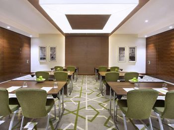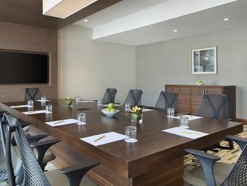 зал для совещаний, где можно провести как крупные, так и небольшие мероприятия, фитнес-центр и бассейн с контролем температуры воды, размещенный на крыше отеля.