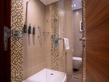 Все номера оформлены в современном стиле в теплых тонах. Каждый номер оснащен телевизором с плоским экраном, мини-баром и электрическим чайником. Ванная комната с душем укомплектована бесплатными туалетно-косметическими принадлежностями.