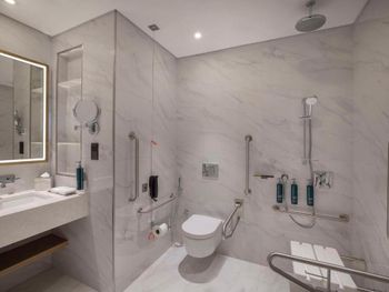 Гости отеля с 4 звездами Hilton Garden Inn Dubai Business Bay могут воспользоваться крытым бассейном и гидромассажной ванной.