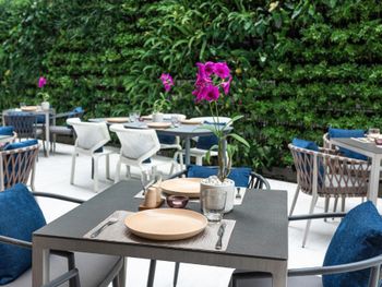 Ежедневно гостям подают завтрак «шведский стол», американский завтрак или вегетарианский завтрак. При Hilton Garden Inn Phuket Bang Tao работает ресторан, где подают блюда американской кухни, блюда британской кухни и блюда французской кухни. Гости могут попросить приготовить вегетарианские, безлактозные и веганские блюда.