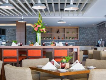 После комфортного ночного отдыха гости могут начать день с аппетитного завтрака в формате «шведский стол» с большим выбором блюд или приготовленных на заказ яиц с домашними американскими вафлями. В открытом на обед и ужин баре/гриль-ресторане Garden с непринужденной обстановкой подают блюда интернациональной кухни. После насщенного дня желающие могут заказать коктейли в лаунже или приобрести напитки, закуски и товары для путешественников в магазине The Shop. Гости, желающие перекусить в позднее время, могут воспользоваться услугой круглосуточной доставки еды и напитков в номер.