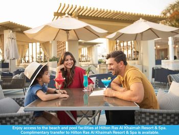 Поездка от отеля Hilton Garden Inn Ras Al Khaimah до международного аэропорта Рас-Аль-Хайма занимает 25 минут, а до международного аэропорта Дубай — 1 час 10 минут.