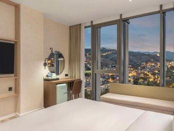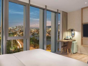 В номере было очень чисто, большая кровать с чистыми простынями, большие панорамные окна с видом на город, в номере были все удобства, уборку делали каждый день