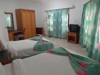Во первых гостиница очень старая . В комнатах грязно . Когда нам дали комнату в ней не работал кондиционер. После третьего обращения они поменяли нам комнату . Нет интернета в комнатах есть только на рецепшене Еда так себе .